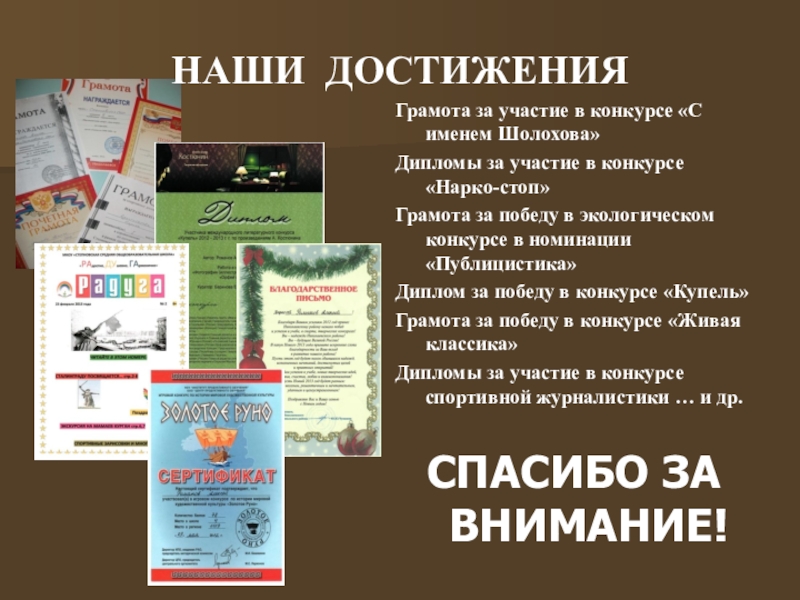 Это сайт презентаций, где можно хранить и обмениваться своими презентациями, докладами, проектами, шаблонами в формате PowerPoint с другими пользователями. Мы помогаем школьникам, студентам, учителям, преподавателям хранить и обмениваться учебными материалами.