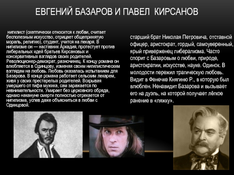старший брат Николая Петровича, отставной офицер, аристократ, гордый, самоуверенный, ярый приверженец либерализма. Часто спорит с Базаровым о любви, природе, аристократии, искусстве, науке. Одинок. В молодости пережил трагическую любовь. Видит в Фенечке Княгиню Р., в которую был влюблен. Ненавидит Базарова и вызывает его на дуэль, на которой получает лёгкое ранение в «ляжку».