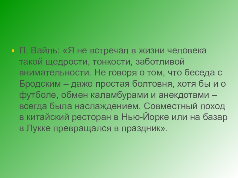 Слайд 13П. Вайль: «Я не встречал в жизни человека такой щедрости, тонкости,