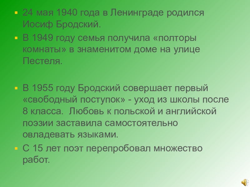 Слайд 524 мая 1940 года в Ленинграде родился Иосиф Бродский.