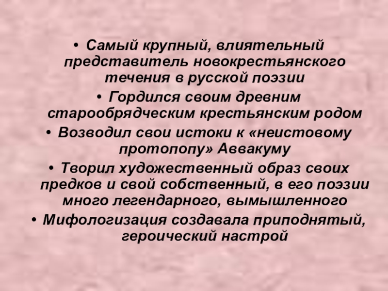 Слайд 8Самый крупный, влиятельный представитель новокрестьянского течения в русской поэзии