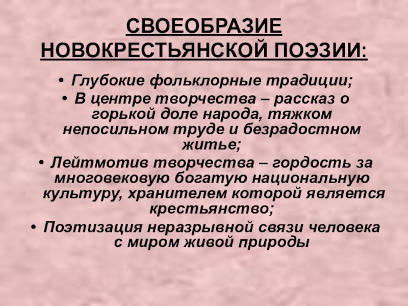Слайд 4СВОЕОБРАЗИЕ НОВОКРЕСТЬЯНСКОЙ ПОЭЗИИ:
