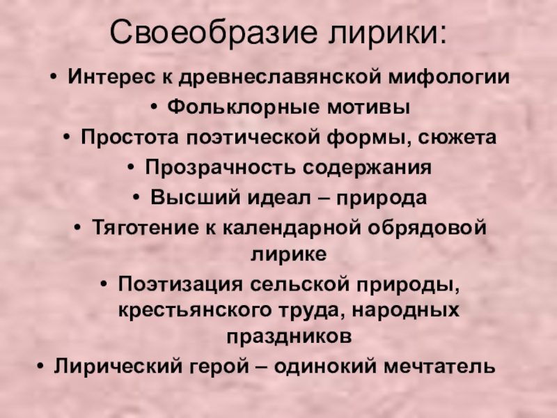 Слайд 30СВОЕОБРАЗИЕ ЛИРИКИ: