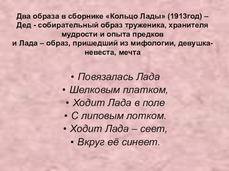 Слайд 25Два образа в сборнике «Кольцо Лады» (1913год) – Дед - собирательный
