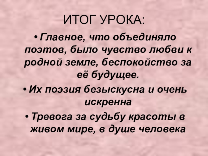 Главное, что объединяло поэтов, было чувство любви к родной земле,
