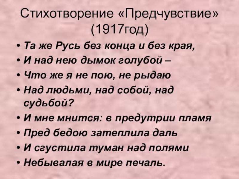 Слайд 27Стихотворение «Предчувствие» (1917год)