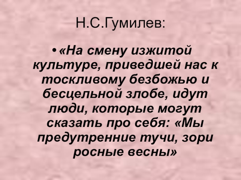 злобе, идут люди, которые могут сказать про себя: «Мы предутренние тучи, зори росные весны»