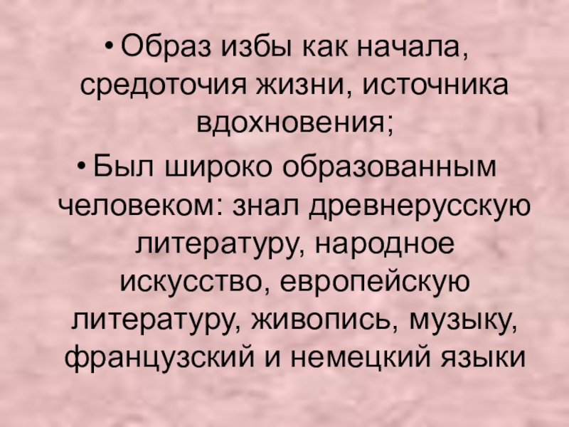 Слайд 15Образ избы как начала, средоточия жизни, источника вдохновения;