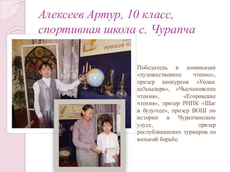 Слайд 23Алексеев Артур, 10 класс, спортивная школа с. Чурапча