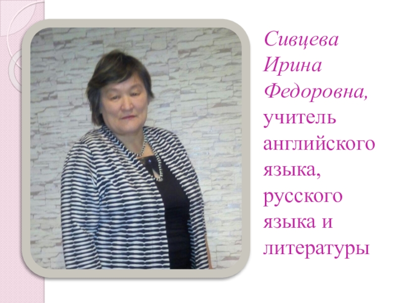 Слайд 9Сивцева Ирина Федоровна, учитель английского языка, русского языка и литературы