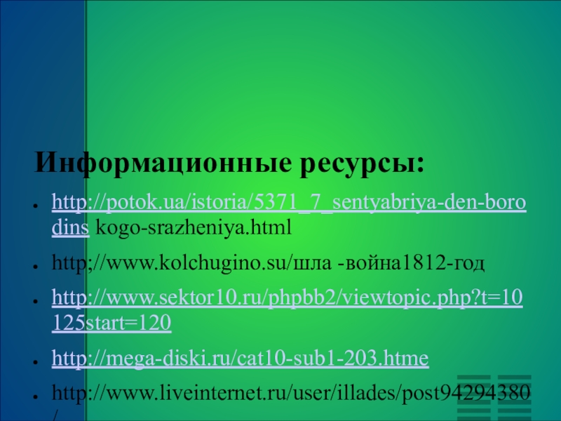 Это сайт презентаций, где можно хранить и обмениваться своими презентациями, докладами, проектами, шаблонами в формате PowerPoint с другими пользователями. Мы помогаем школьникам, студентам, учителям, преподавателям хранить и обмениваться учебными материалами.