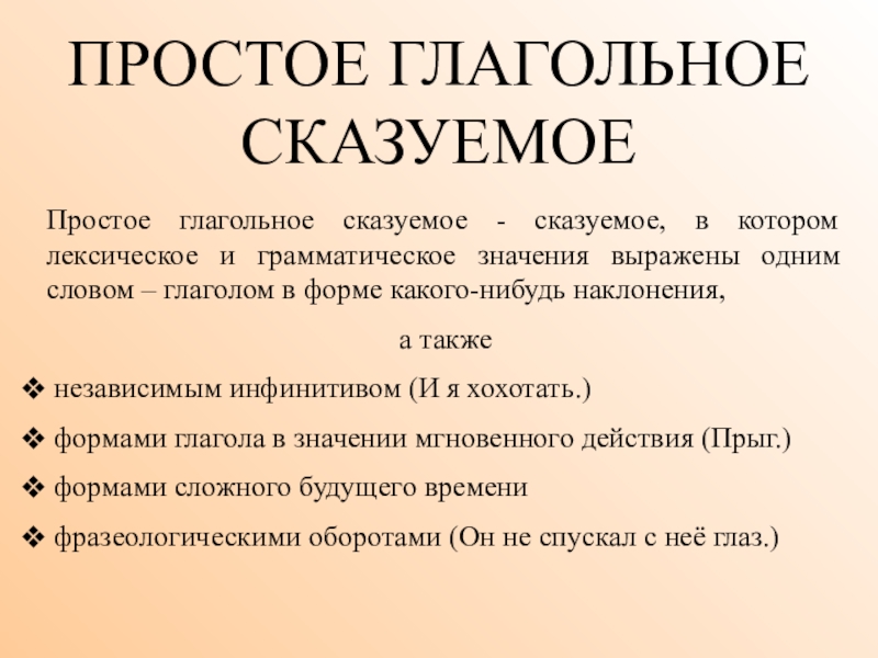 Слайд 4ПРОСТОЕ ГЛАГОЛЬНОЕ СКАЗУЕМОЕ