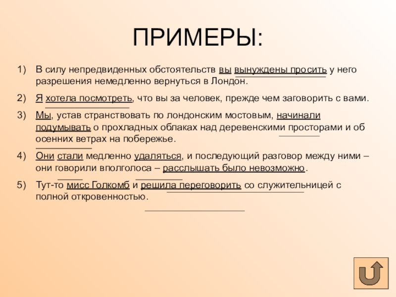 глаголы со значением движения, положения в пространстве: прийти, приехать, вернуться, сидеть, стоять и другие