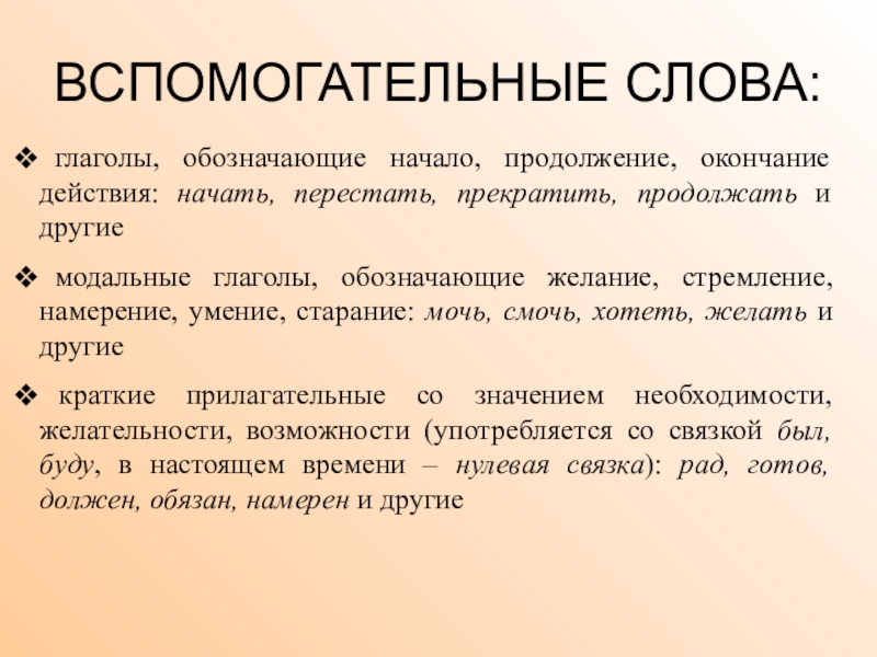 Слайд 7ВСПОМОГАТЕЛЬНЫЕ СЛОВА: