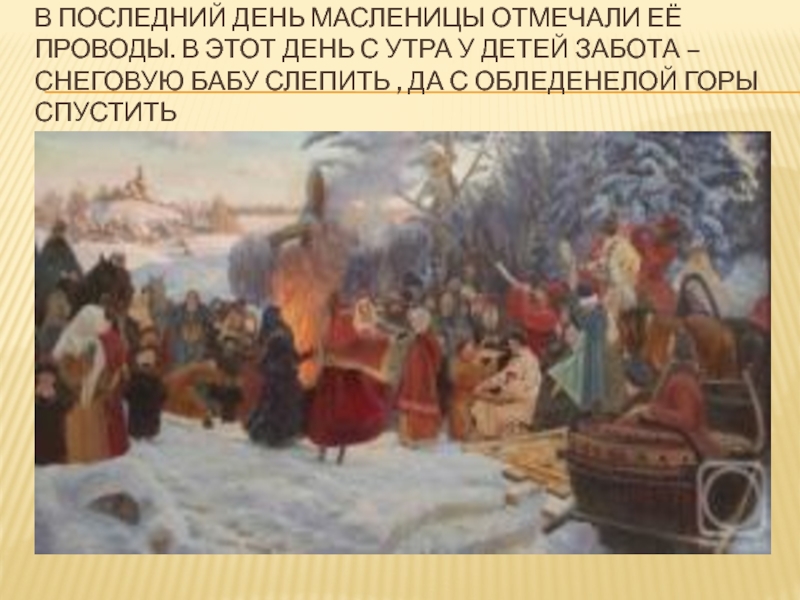 Слайд 17В последний день Масленицы отмечали её проводы. В этот день с