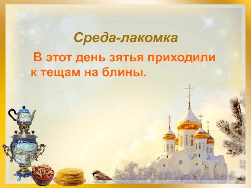 Среда-лакомка  В этот день зятья приходили к тещам на блины.