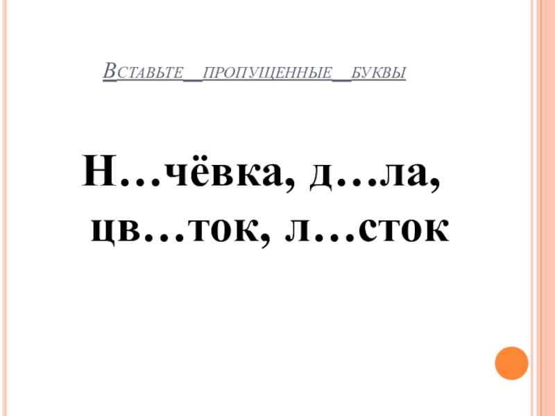 Вставьте  пропущенные  буквыН…чёвка, д…ла, цв…ток, л…сток