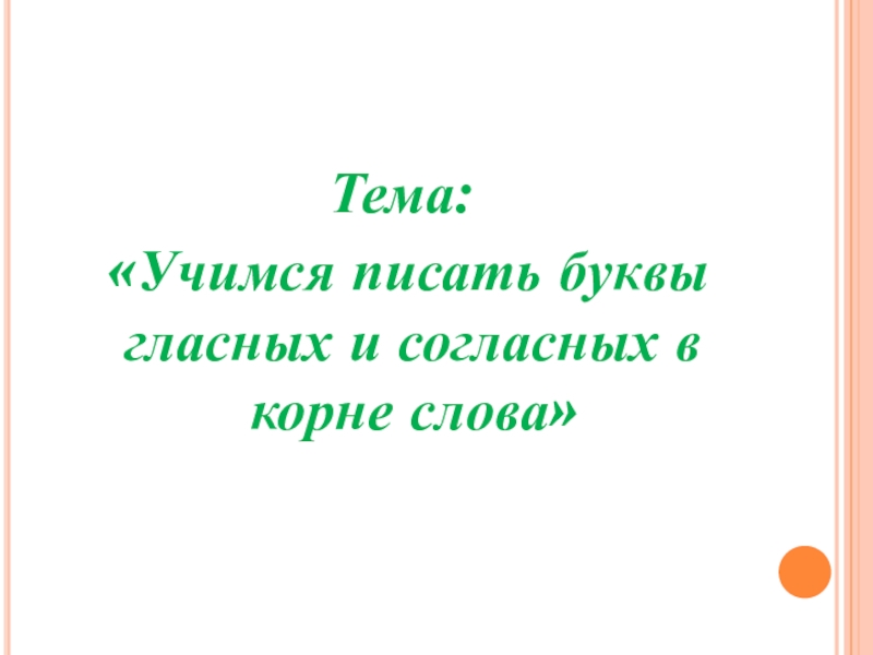 Тема: «Учимся писать буквы гласных и согласных в корне слова»