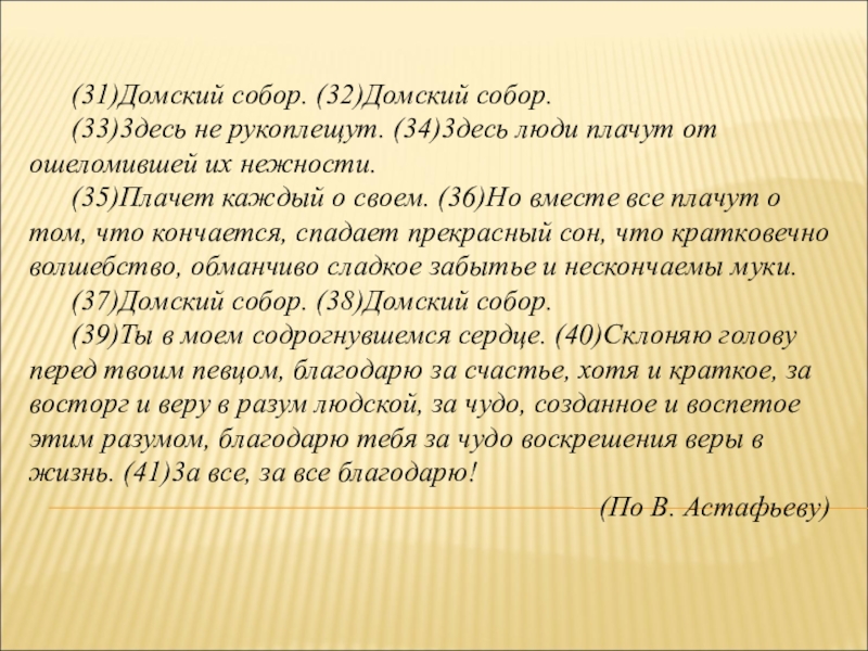 (33)3десь не рукоплещут. (34)3десь люди плачут от ошеломившей их нежности.