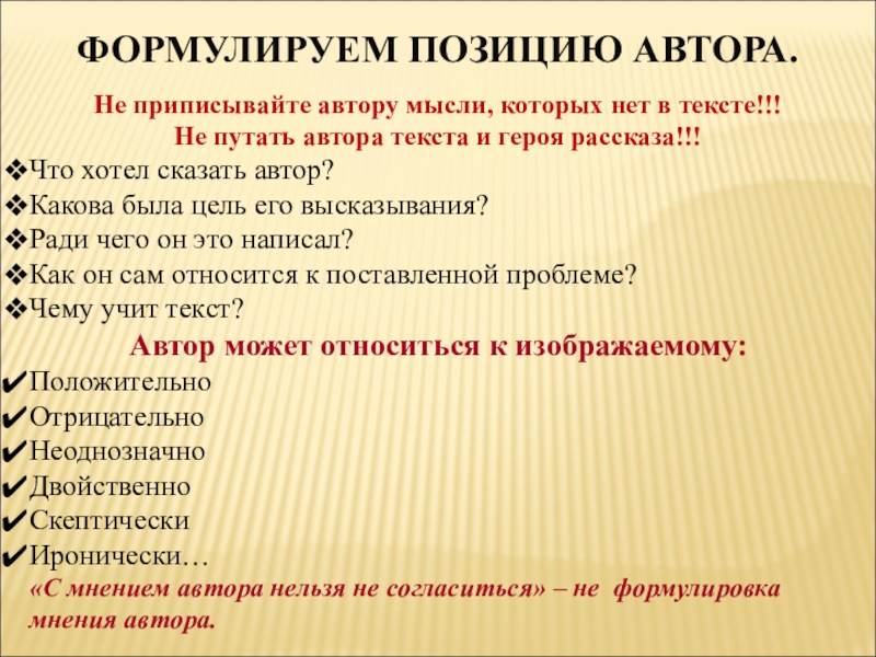 «С мнением автора нельзя не согласиться» – не формулировка мнения автора.