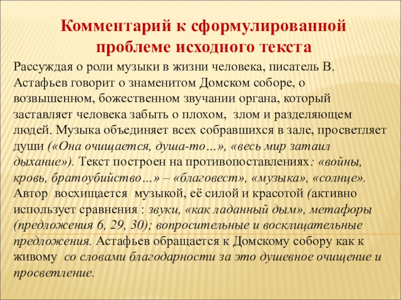 Автор текста В. Астафьев размышляет о силе воздействия музыки на человека