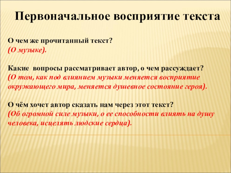 (О том, как под влиянием музыки меняется восприятие окружающего мира, меняется душевное состояние героя).