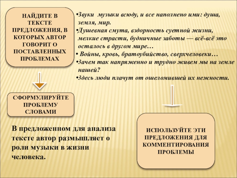 В предложенном для анализа тексте автор размышляет о роли музыки в жизни человека.