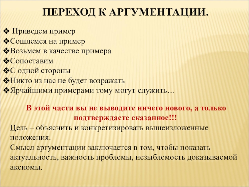 Слайд 23ПЕРЕХОД К АРГУМЕНТАЦИИ.