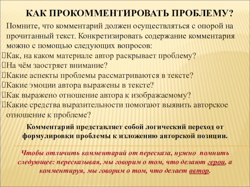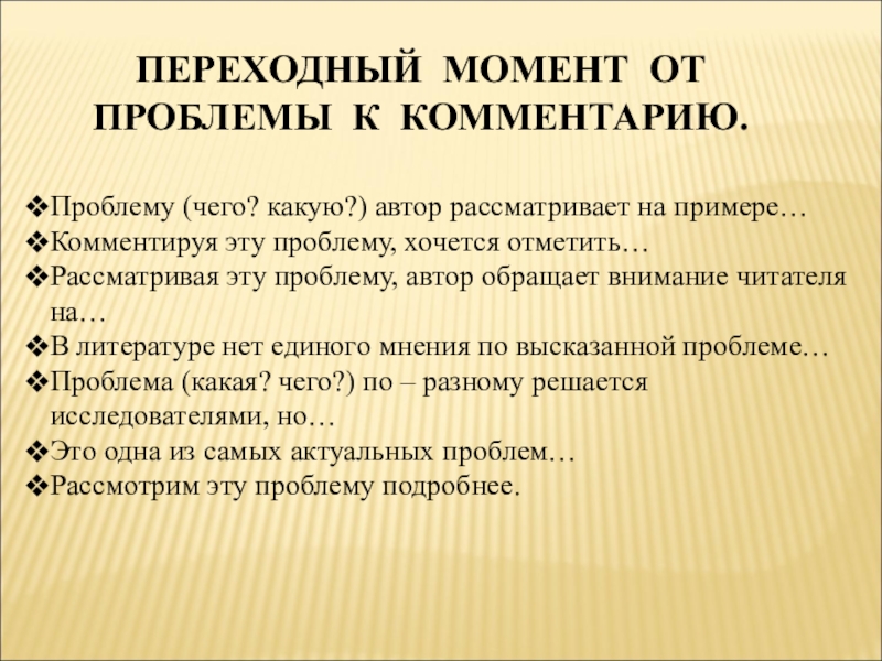 ПЕРЕХОДНЫЙ МОМЕНТ ОТ ПРОБЛЕМЫ К КОММЕНТАРИЮ.