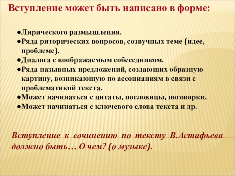 Вступление к сочинению по тексту В.Астафьева должно быть… О чем? (о музыке).