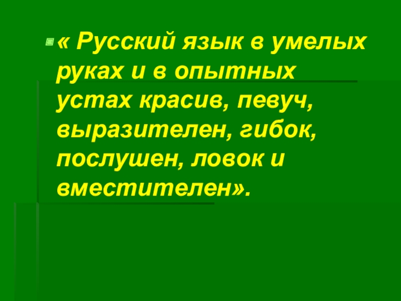 в опытных устах красив, певуч, выразителен, гибок, послушен, ловок и вместителен».