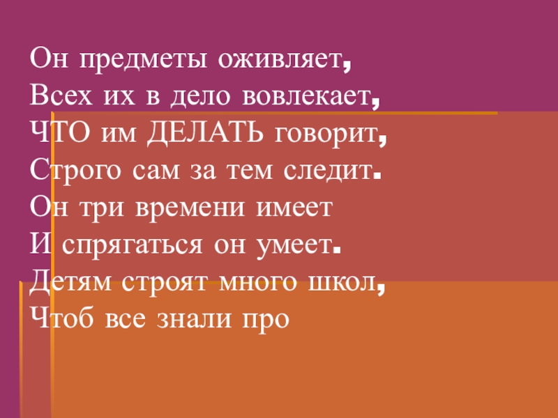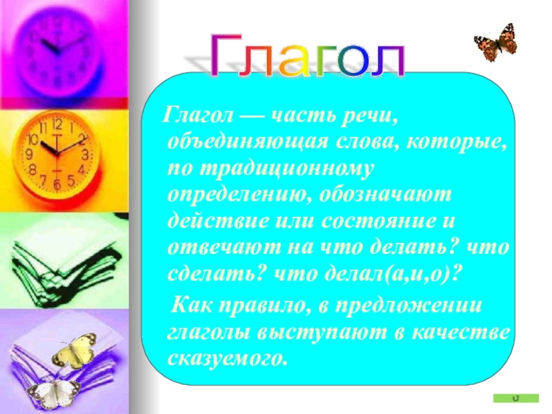 Глагол — часть речи, объединяющая слова, которые, по традиционному