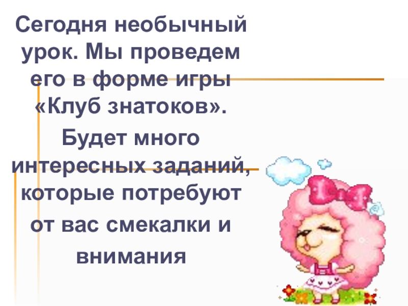 Сегодня необычный урок. Мы проведем его в форме игры «Клуб