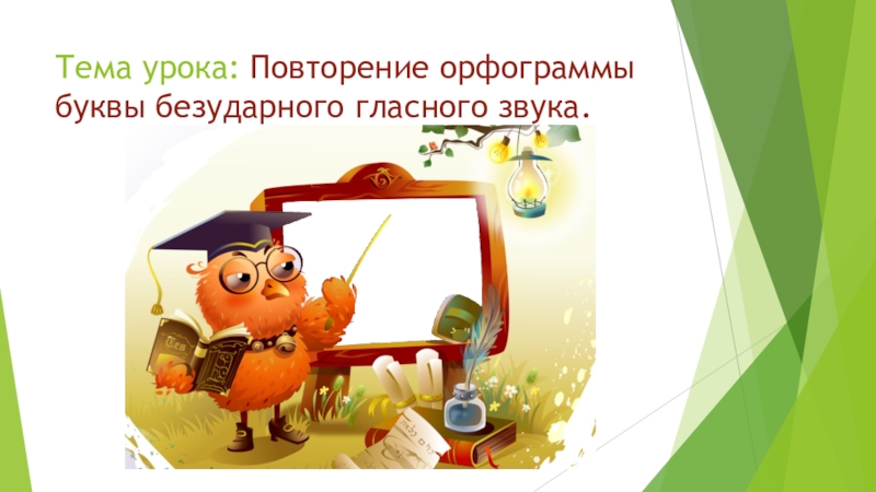 Тема урока: Повторение орфограммы буквы безударного гласного звука.
