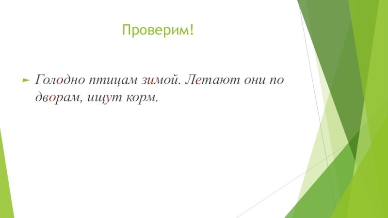 Проверим!Голодно птицам зимой. Летают они по дворам, ищут корм.