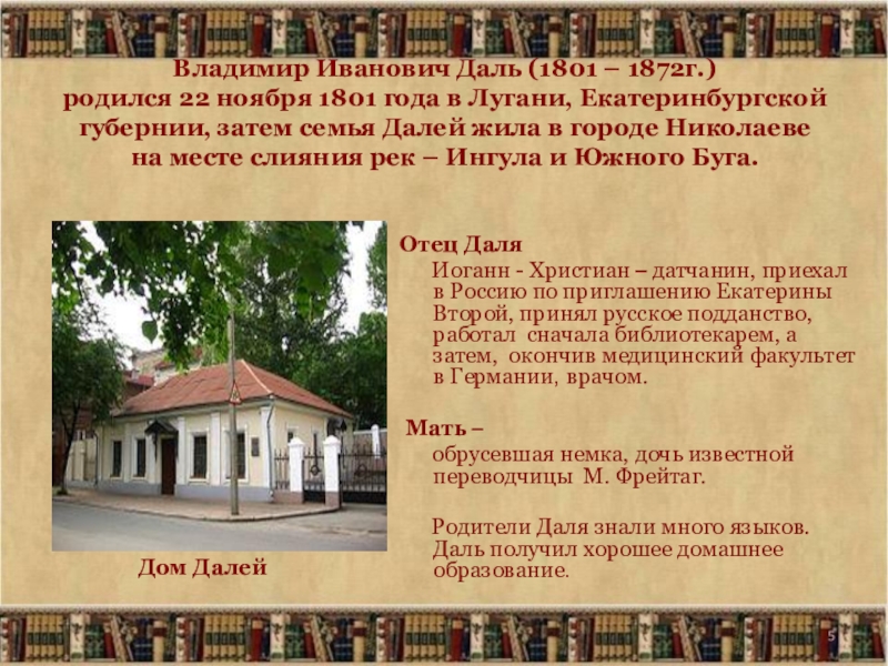 Родители Даля знали много языков. Даль получил хорошее домашнее образование.