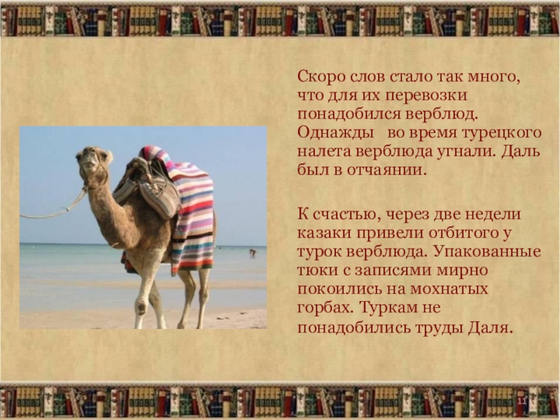перевозки понадобился верблюд. Однажды во время турецкого налета верблюда угнали. Даль был в отчаянии.