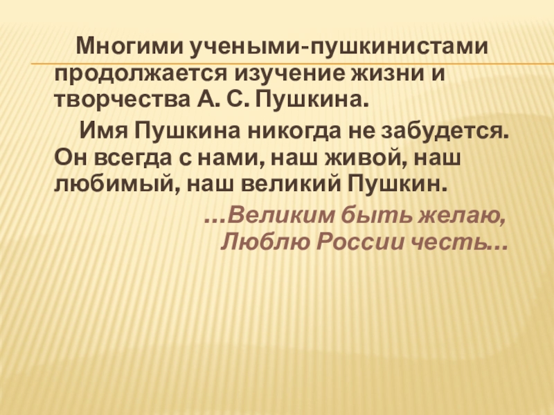 Слайд 14 Многими учеными-пушкинистами продолжается изучение жизни и творчества