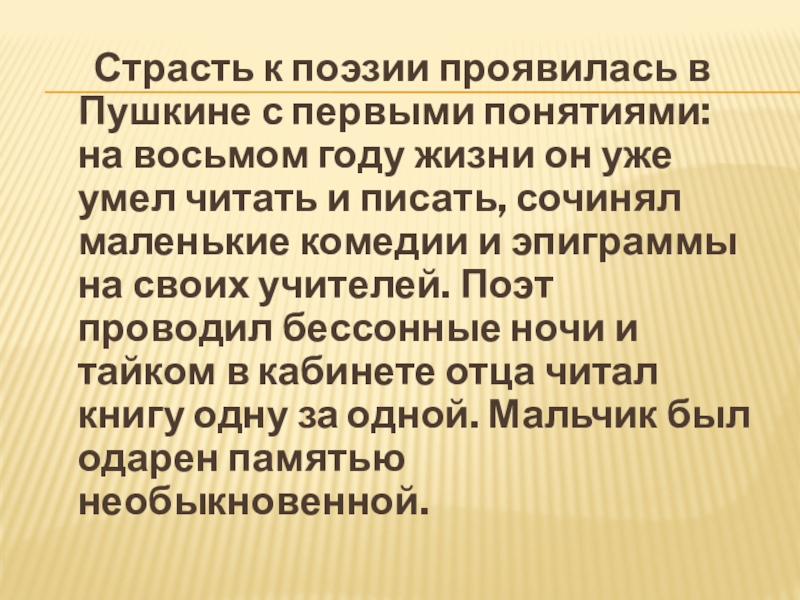 Слайд 8 Страсть к поэзии проявилась в Пушкине с первыми