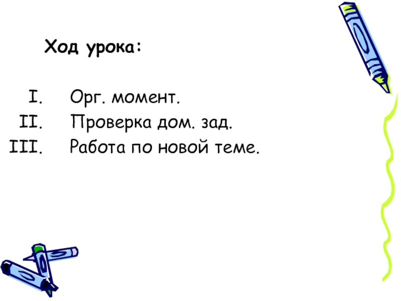 Ход урока:Орг. момент.Проверка дом. зад.Работа по новой теме.