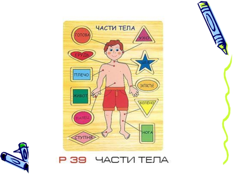 Цель: -познакомить учащихся с частями тела человека;-научить определять части тела человека;-развить творческие способности, развить речь,