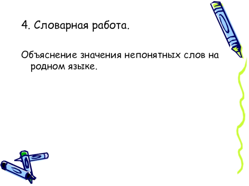 4. Словарная работа.Объяснение значения непонятных слов на родном языке.