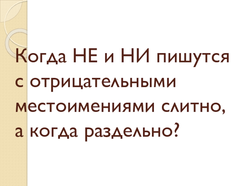 Слайд 6Когда НЕ и НИ пишутся с отрицательными местоимениями слитно, а когда
