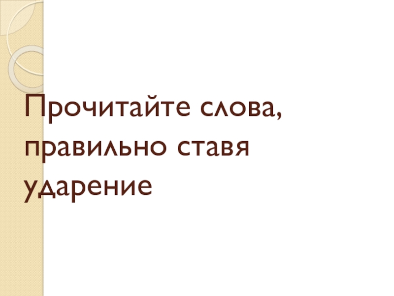 Слайд 7Прочитайте слова, правильно ставя ударение