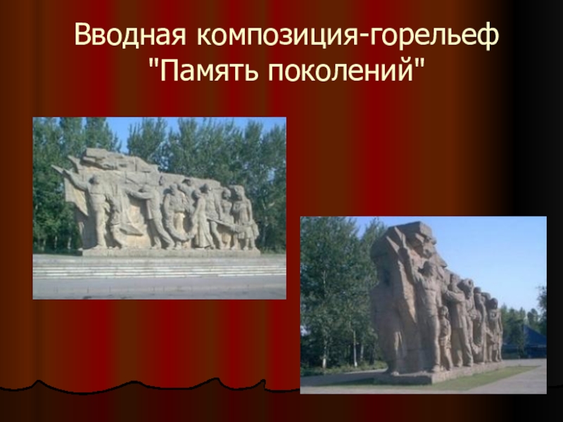 Слайд 4Вводная композиция-горельеф "Память поколений"