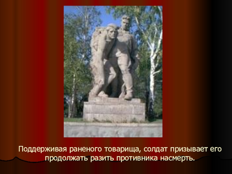 Слайд 23Поддерживая раненого товарища, солдат призывает его продолжать разить противника насмерть.