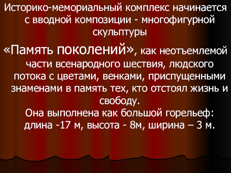 Слайд 5Историко-мемориальный комплекс начинается с вводной композиции - многофигурной скульптуры