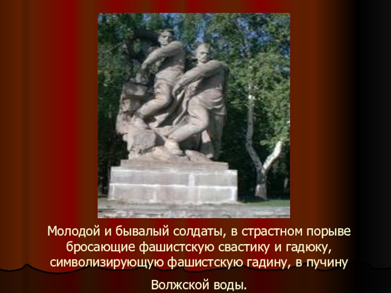 гадюку, символизирующую фашистскую гадину, в пучину Волжской воды.