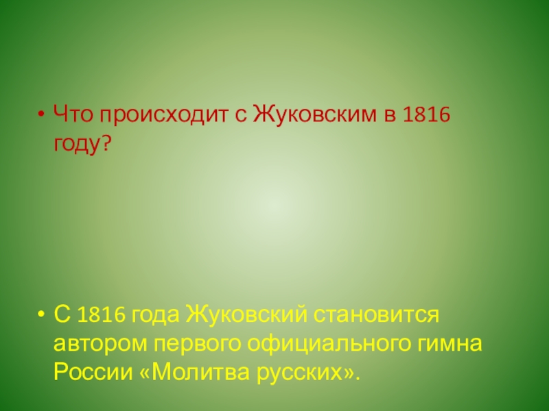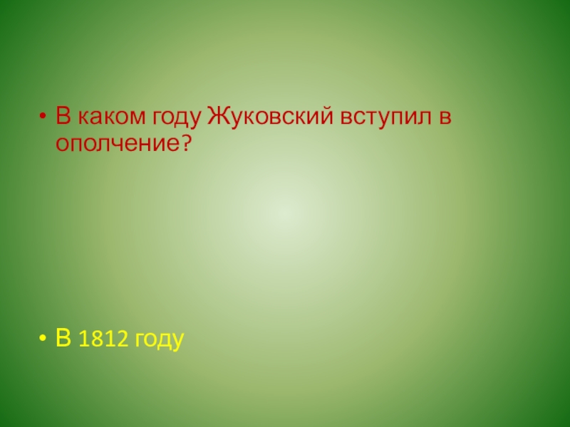 В 1812 году Жуковский вступил в ополчение. В лагере под Тарутиным он написал «Певца во стане русских воинов», сразу доставившего ему несравненно большую известность, чем вся предшествовавшая его поэтическая деятельность. В тысячах списков оно разошлось в армии и в России.