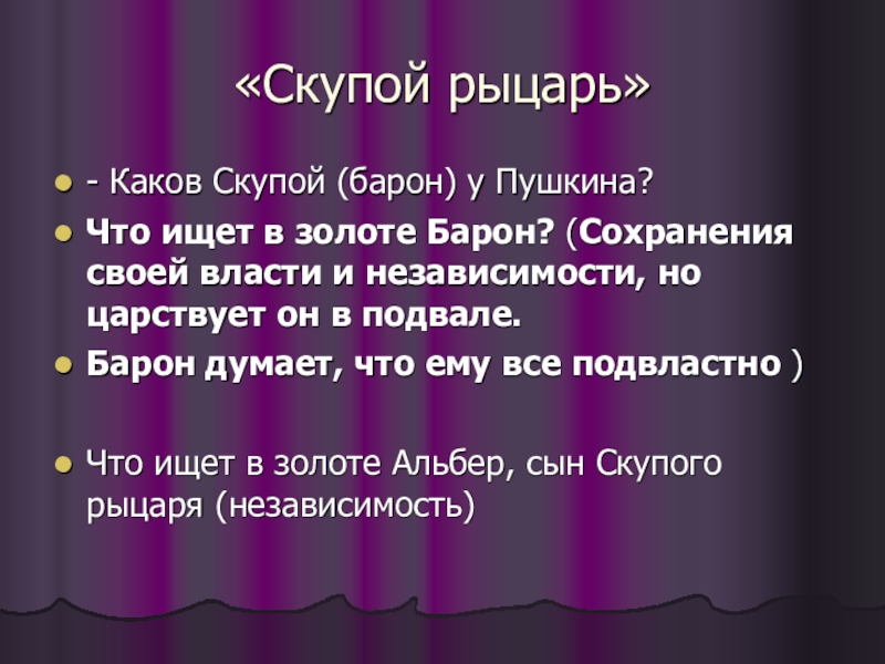 Что ищет в золоте Альбер, сын Скупого рыцаря (независимость)